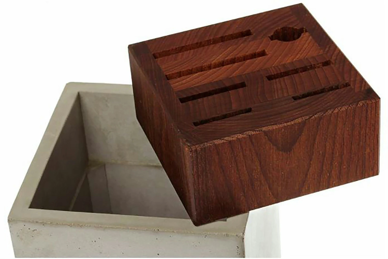 – Hergestellt aus Zement und Holz.
